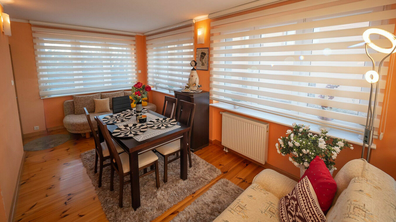 • Salon z jadalnią i wyjściem do ogrodu